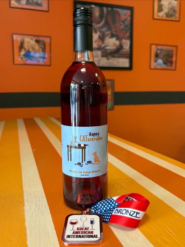 Try our newest sweet blush wine, Happy CATastrophe! It made it’s debut with a shiny medal!