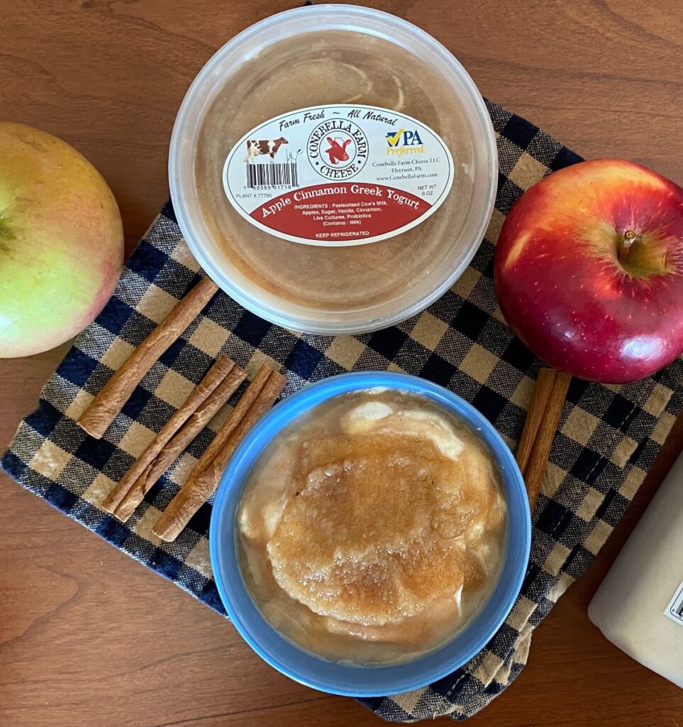 We’re excited to welcome back another fall favorite–Apple Cinnamon Greek yogurt! We will also have a new ice cream–Mint Chip!