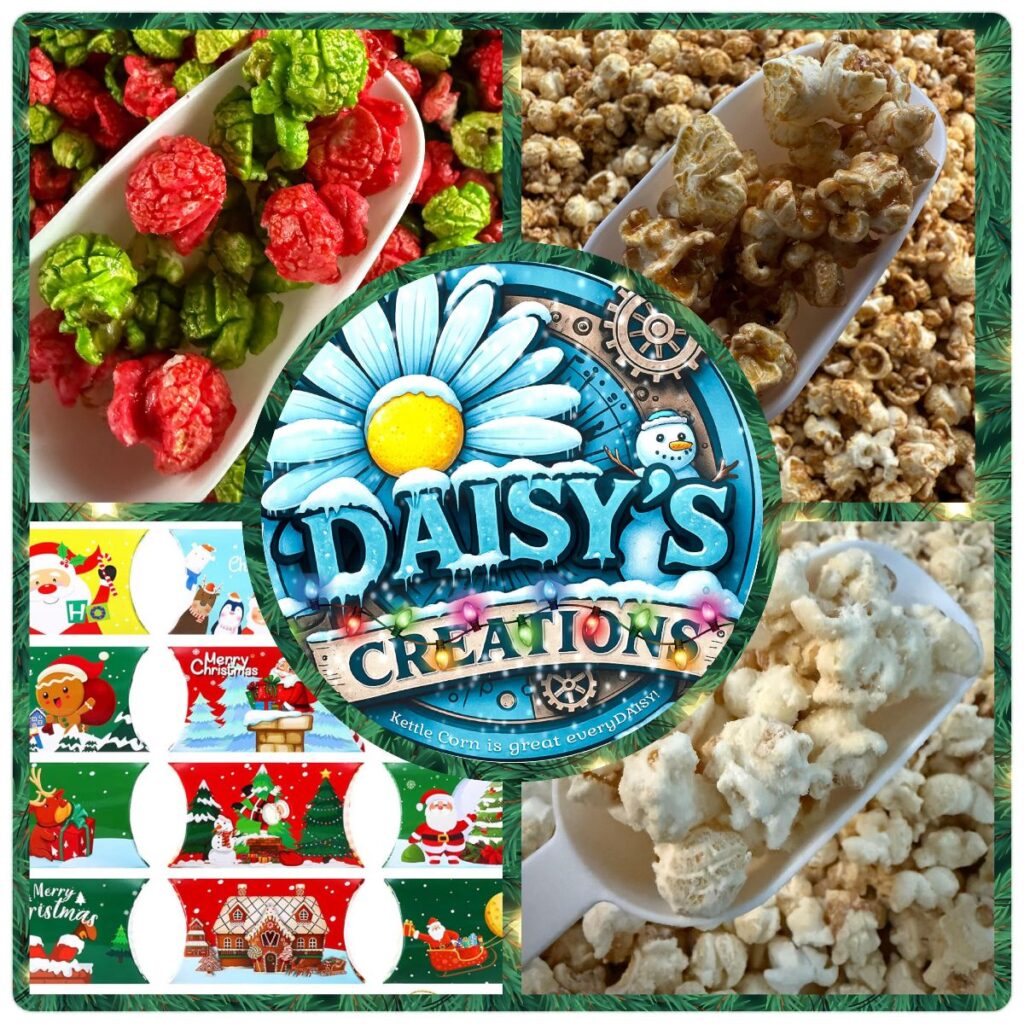 Daisy’s Creations will be offering various flavors & colors of freshly popped kettle corn as well as kettle corn related gifts. Please check out our website www.daisyscreationsllc.com for more information. Kettle Corn is great everyDAISY!