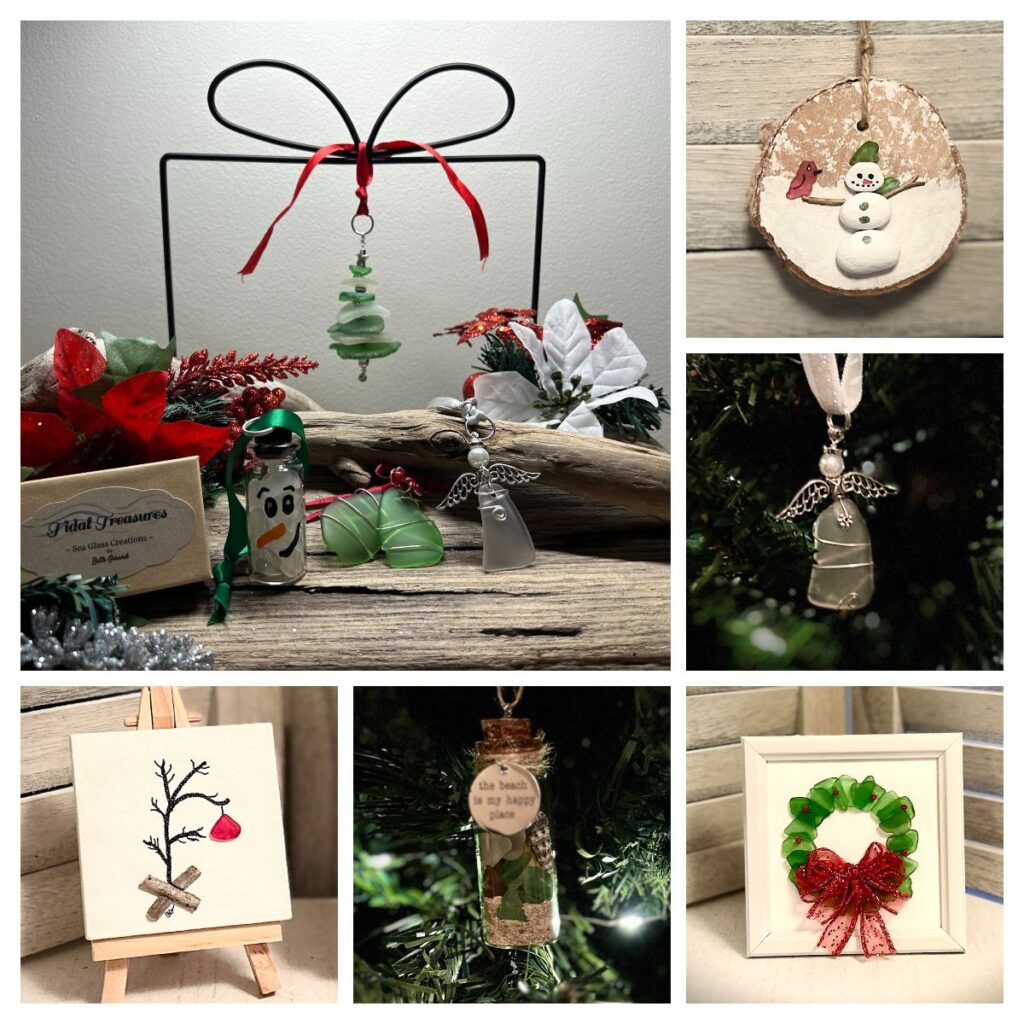 Add something new to your holiday collection with handmade sea glass Christmas ornaments and decor. Each piece is uniquely crafted, so no two pieces are exactly the same. All glass is collected from the shores of the Chesapeake Bay, adding a touch of coastal charm to your festivities. Perfect as gifts or a special addition to your own collection.